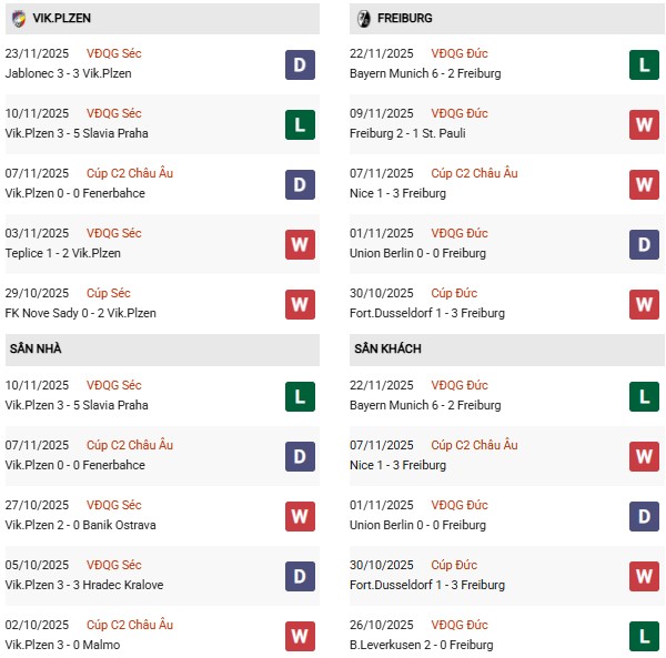 Thống kê phong độ Viktoria Plzen vs Freiburg: