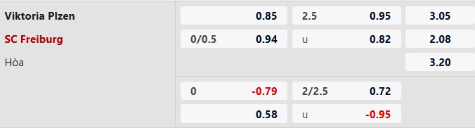 Thông tin tỷ lệ kèo Viktoria Plzen vs Freiburg: