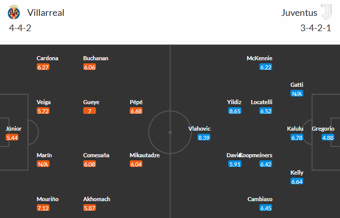 Đội hình dự kiến Villarreal vs Juventus: