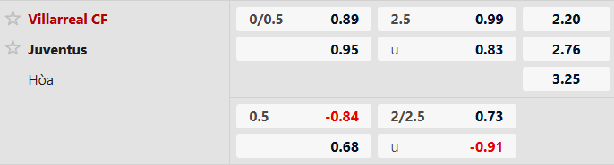 Thông tin tỷ lệ bóng đá Villarreal vs Juventus: