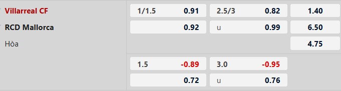 Thông tin tỷ lệ bóng đá Villarreal vs Mallorca: