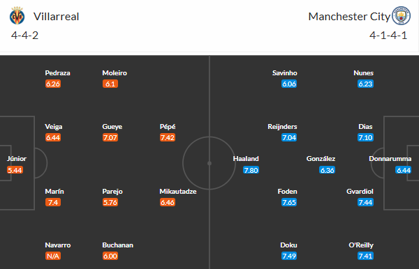 Đội hình dự kiến Villarreal vs Man City: