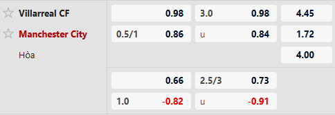 Thông tin tỷ lệ kèo bóng đá Villarreal vs Man City: