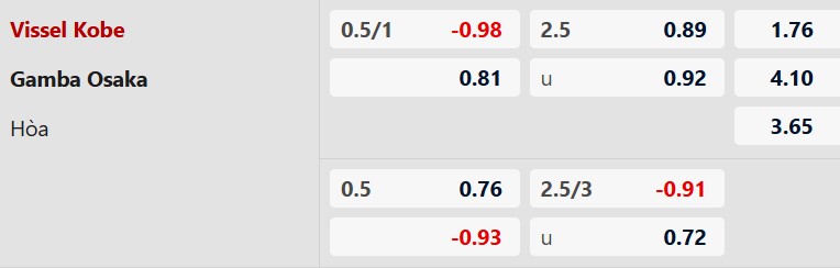 Thông tin tỷ lệ kèo Vissel Kobe vs Gamba Osaka: