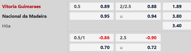 Thông tin tỷ lệ kèo Vitoria Guimaraes vs Nacional:
