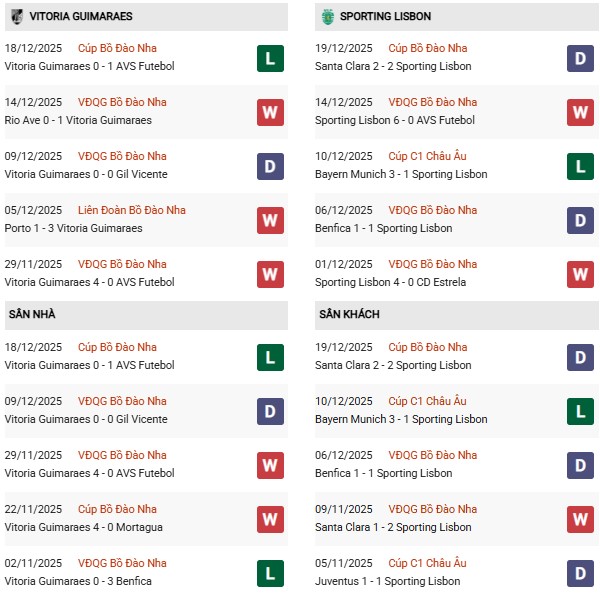 Thống kê phong độ Vitoria vs Sporting Lisbon: