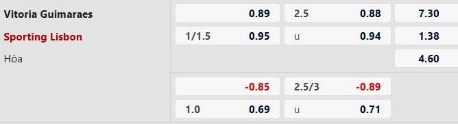 Thông tin tỷ lệ kèo bóng đá Vitoria vs Sporting Lisbon: