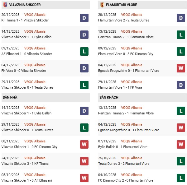 Thống kê phong độ Vllaznia vs Flamurtari: