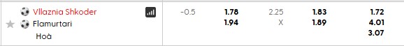 Thông tin tỷ lệ Vllaznia vs Flamurtari: