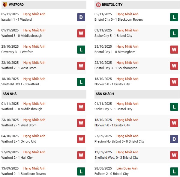 Trên sân khách, Bristol City cũng thi đấu phập phù – chỉ thắng 1/3 chuyến hành quân gần nhất, trong đó hàng thủ thủng lưới tới 6 bàn. Với phong độ hiện tại, việc phải làm khách trước một Watford đang lên phong độ là thử thách không nhỏ cho thầy trò Gerhard Struber.