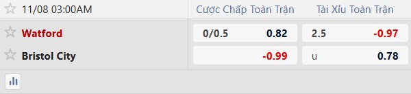 Thông tin tỷ lệ bóng đá Watford đấu với Bristol City: