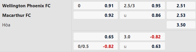 Thông tin tỷ lệ Wellington vs Macarthur: