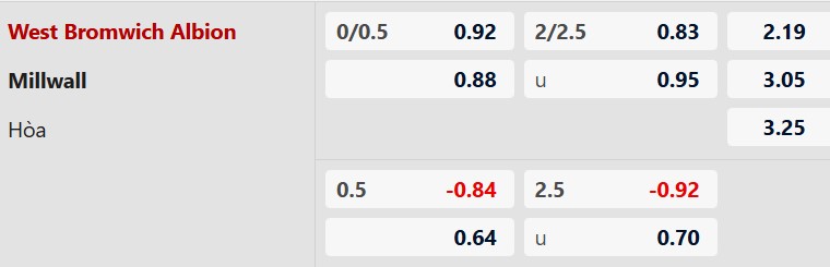 Thông tin kèo bóng đá West Brom vs Millwall: