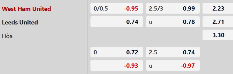 Nhận định kèo tài xỉu West Ham vs Leeds: