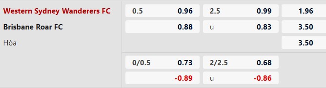 Thông tin tỷ lệ kèo Western Sydney vs Brisbane:
