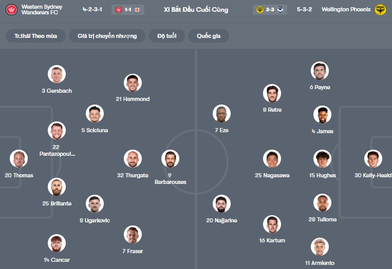 Đội hình dự kiến Western Sydney vs Wellington: