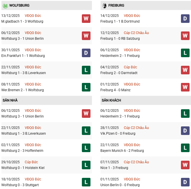 - Trên sân nhà, Wolfsburg thắng 4, thua 5 trước Freiburg.