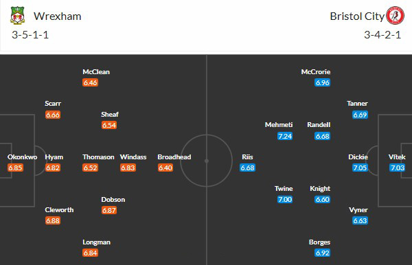 Số liệu thống kê về Wrexham gặp Bristol City: