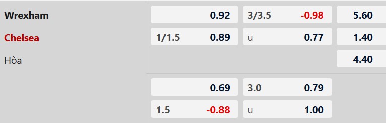 Soi kèo châu Á Wrexham vs Chelsea: