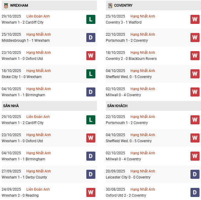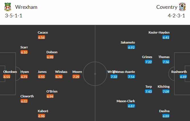 - Trên sân nhà, Wrexham thắng 1, hòa 1 trước Coventry.