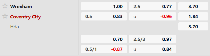 Thông tin tỷ lệ bóng đá Wrexham vs Coventry: