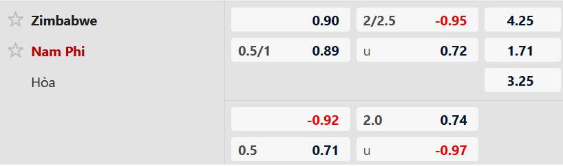 Soi kèo châu á Zimbabwe vs Nam Phi: